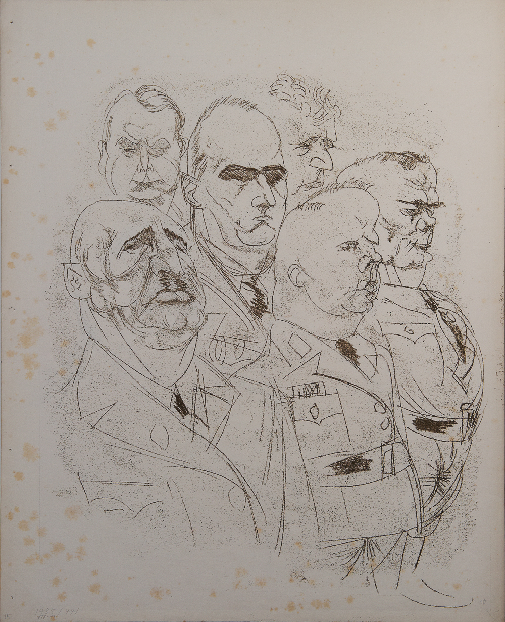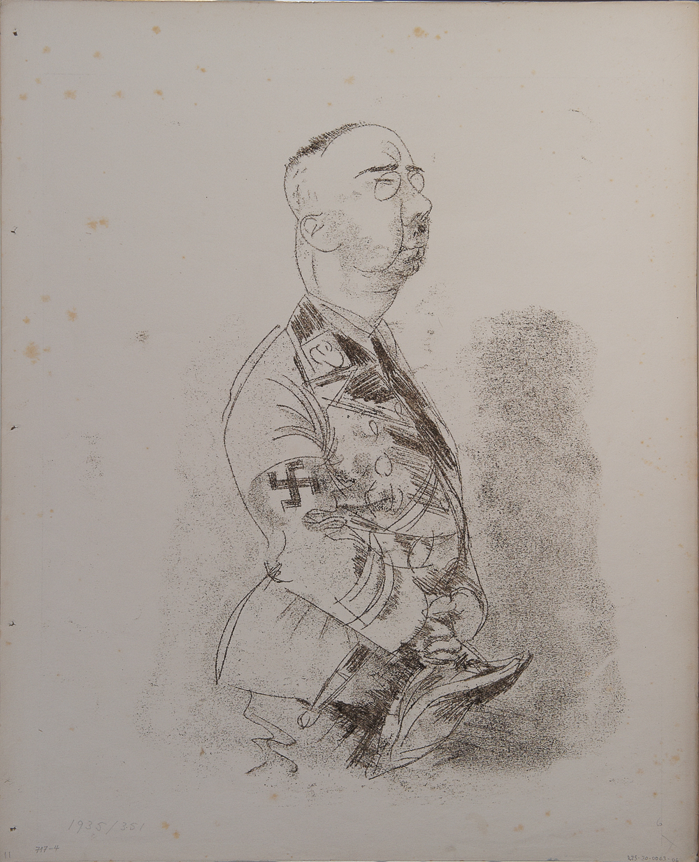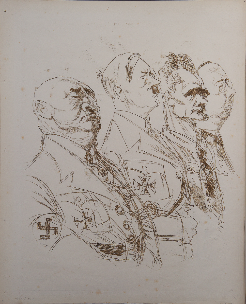 Diese Zeichnungen sind nicht bloße Zeitungskarikaturen, sie enthüllen Tatsachen. Hinter den Masken kommen grausame Zerrbilder zum Vorschein, geprägt vom Nazitum.