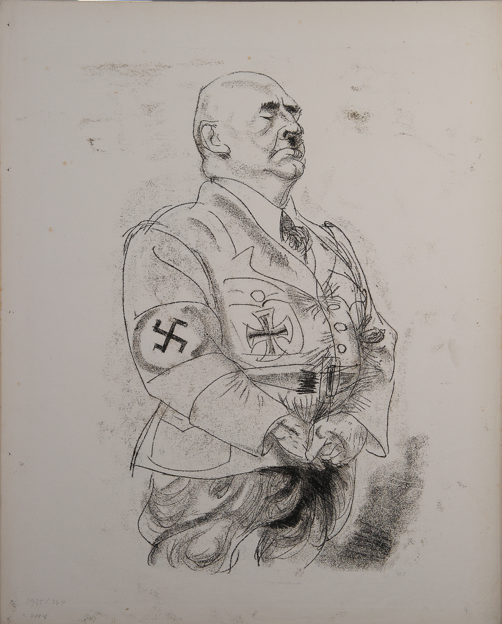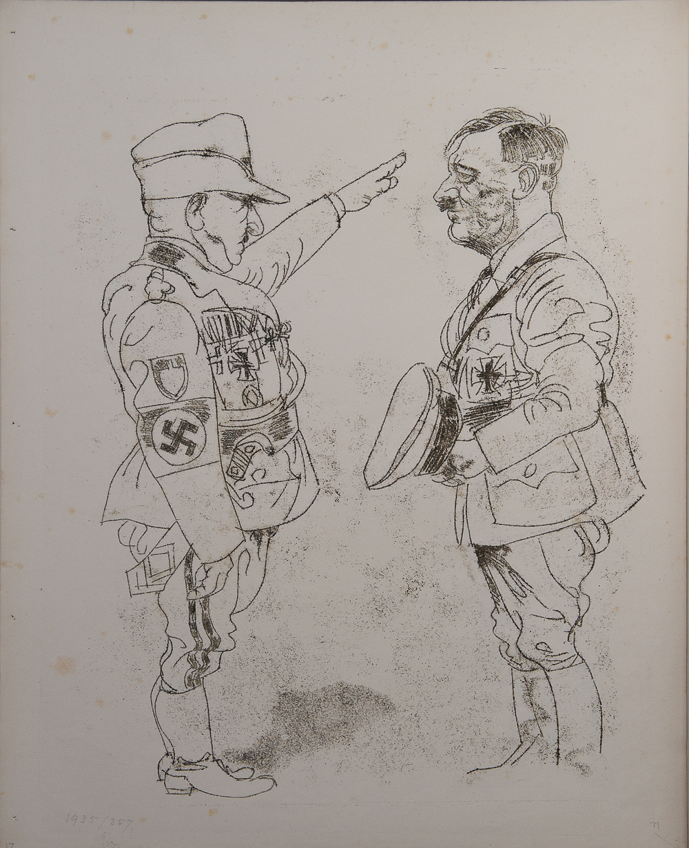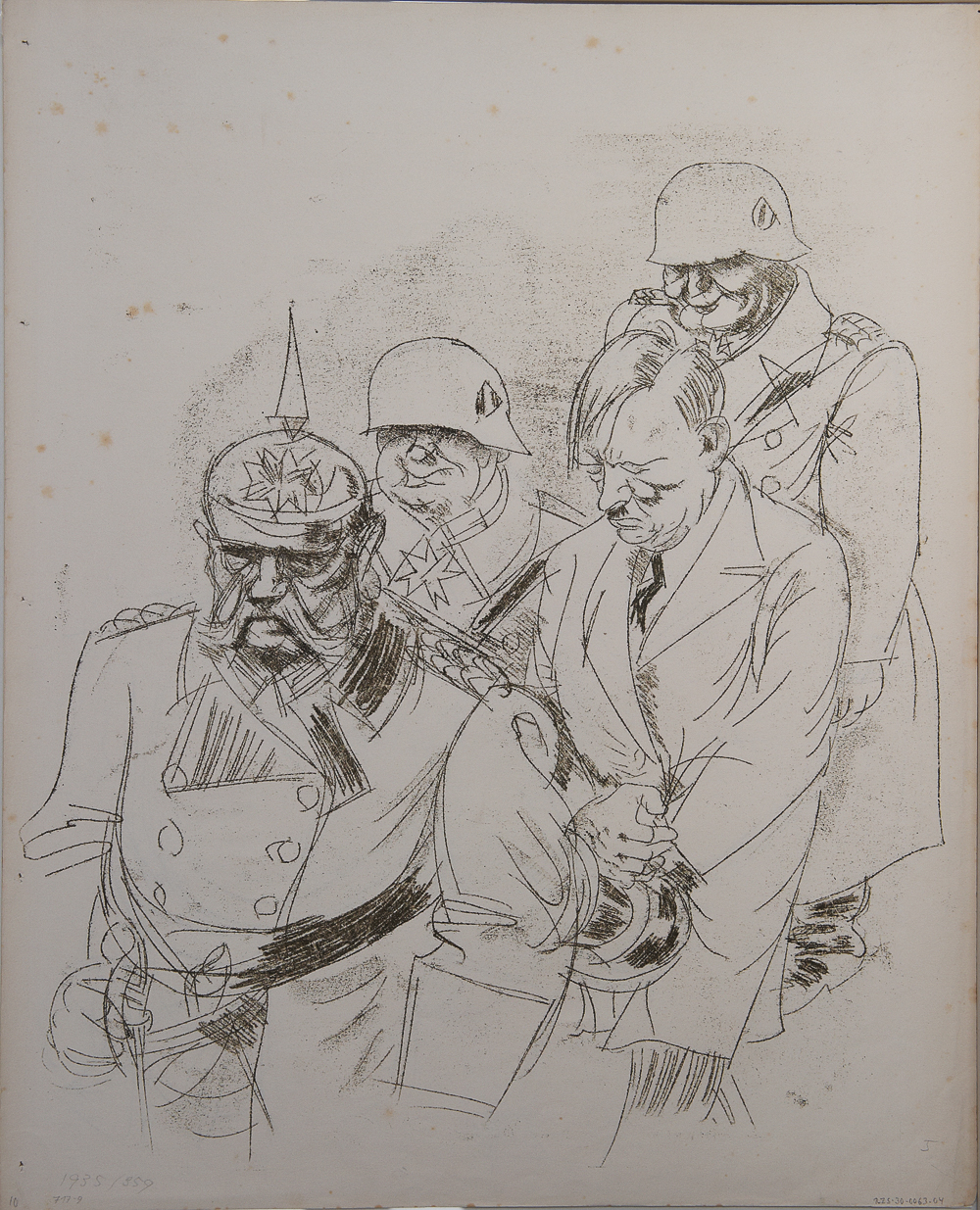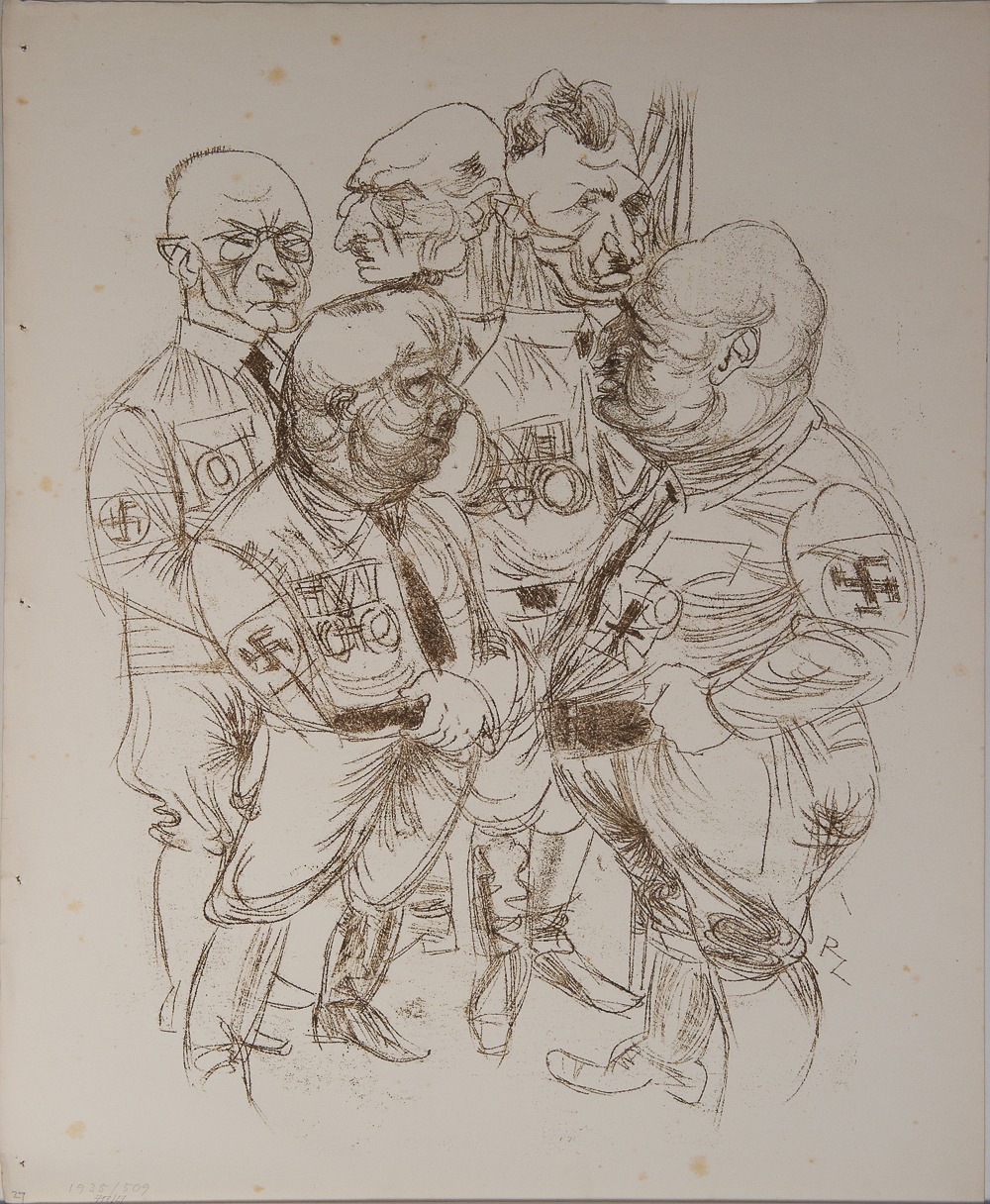 Diese Zeichnungen sind nicht bloße Zeitungskarikaturen, sie enthüllen Tatsachen. Hinter den Masken kommen grausame Zerrbilder zum Vorschein, geprägt vom Nazitum.