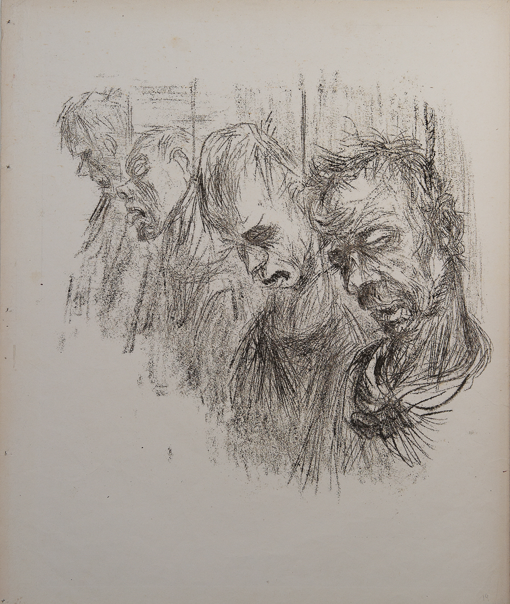 Bevor sich Ziegler an die endgültige Gestaltung der Monotypien machte, schuf er – als erste Umsetzung der Zeitungsfotos – diese expressiven Bleistiftvorskizzen.